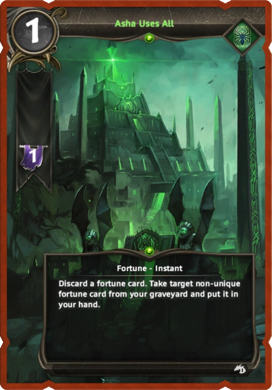 Discard a fortune card. Take target non-unique fortune card from your graveyard and put it in your hand.