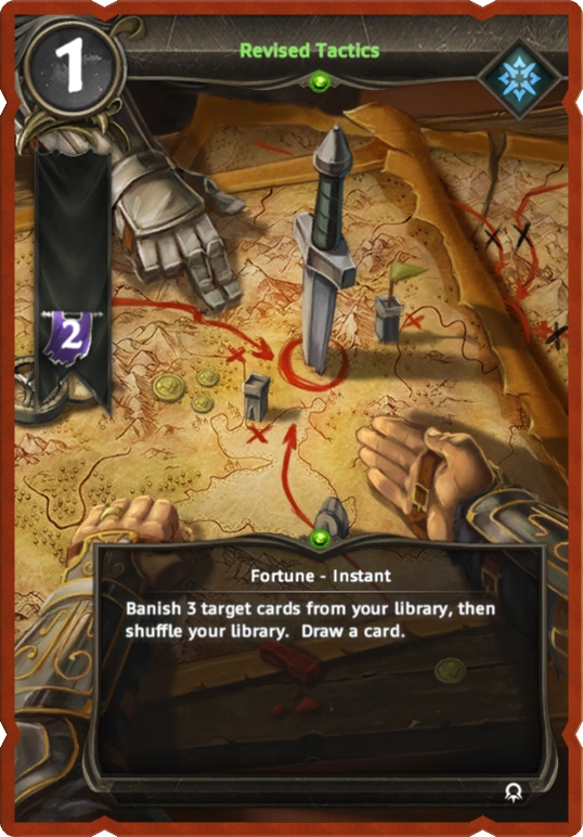 Banish 3 target cards from your library, then shuffle your library. Draw a card.